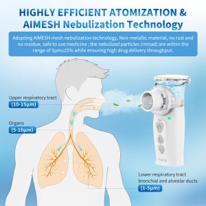 I really like this nebulizer. It’s small and portable. You can take it anywhere and fits in my purse nicely. It’s easy to use. You just put your meds in the cup and press the button to turn it on. It functions very well. The noise level is almost nonexistent. Easy to clean too. I’ve used it 3 times and the battery is still going strong on the first charge.